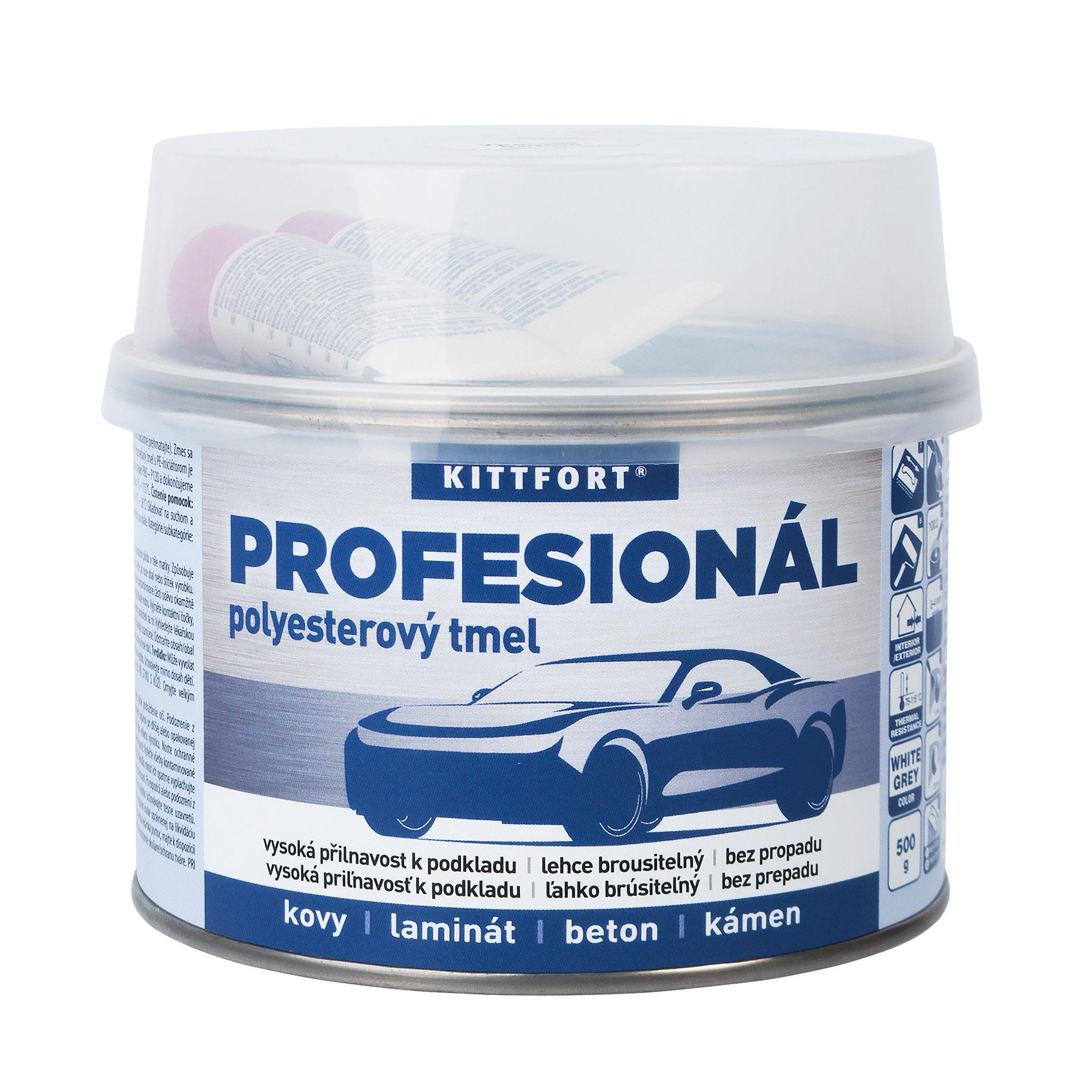 Фин попълващ кит за китване на малки и средни неравности по автомобилни каросерии, също така в индустрията за поправка на части на машини и устройства, както и за поправка на предмети от чугун, алуминий, цинк, бетон и стъклоламинат. Благодарение на фината структура е подходящ за моделисти. Подходящи основи: поцинкована ламарина, желязо, алуминий, дърво, бетон, стъклоламинат, природен камък и голяма част от изкуствените материали.