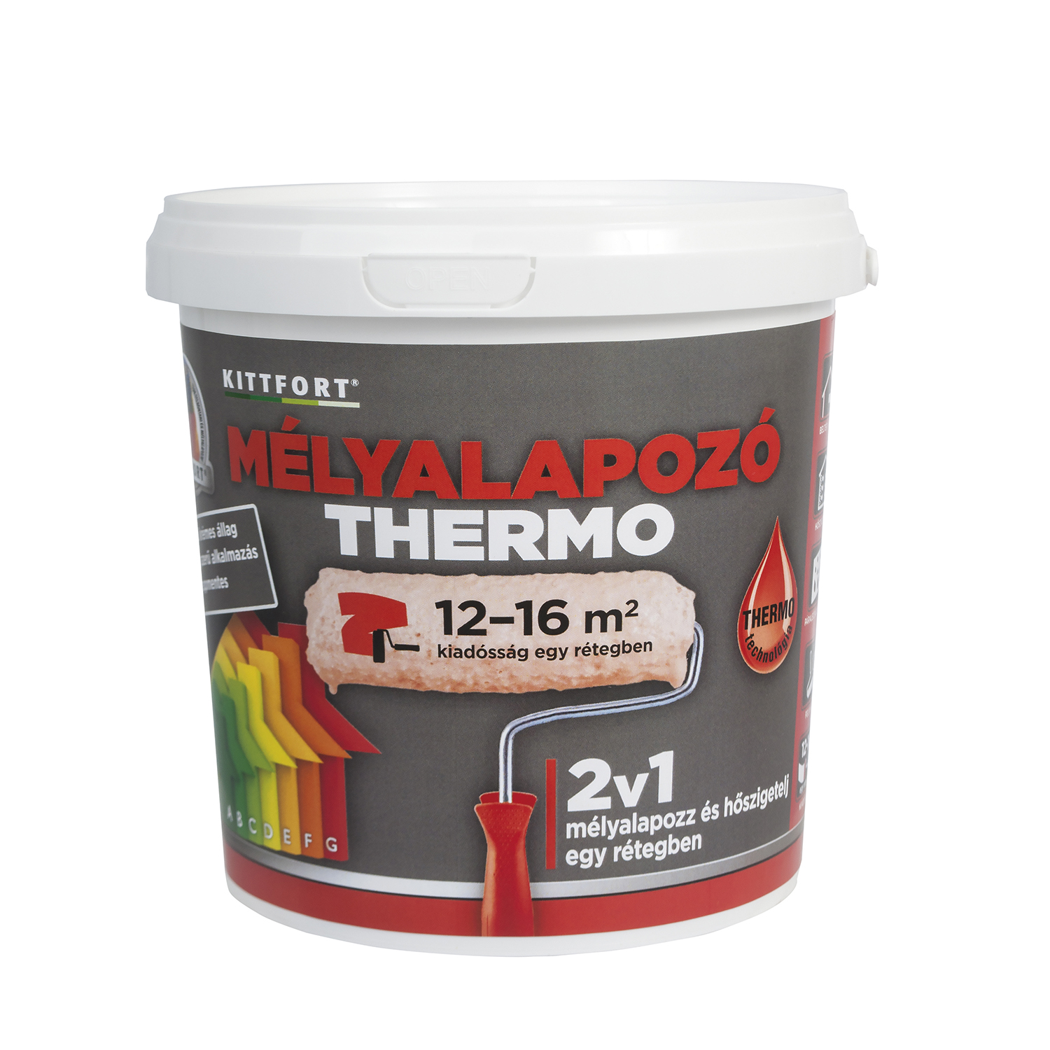 A Thermo mélyalapozó vízbázisú sztirén-akril kopolimer bázisú nanorészecskékkel. Töltő anyagként 50-100 mikrométer méretű vákuumos mikro golyókat tartalmaz. Minden olyan felületre alkalmas ahol egységesíteni kell a felület nedvszívását, szilárdítani a morzsálódós felületet festés előtt. Összetételének köszönhetően nem csak mély alapoz hanem lélegző hővisszaverő réteget is alkot. A mélyalapozáskor létrejött hőszigetelő tulajdonság átfestés után is megmarad. A mélyalapozó krémes állaga egyszerű megfolyás és cseppmentes munkát tesz lehetővé, hengereléssel is. A felhasznált kötőanyag lehetővé teszi a falak légzését, gátolja a pára lecsapódását a hideg falakon pl. ajtók mellett, belső ablak kávákon. Emelve a falfelület hőmérsékletét csökkenti a penész képződését. A Thermo mélyalapozó növeli otthona komfort érzetét.